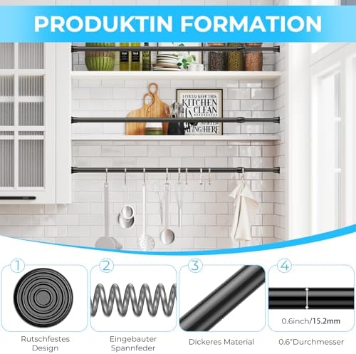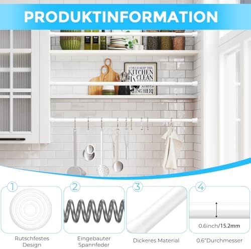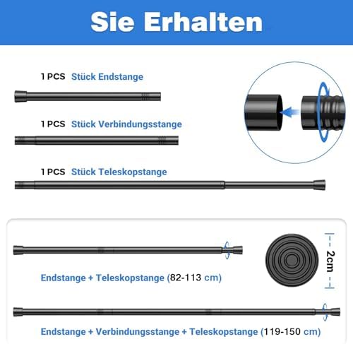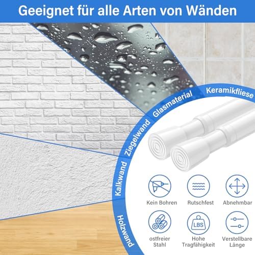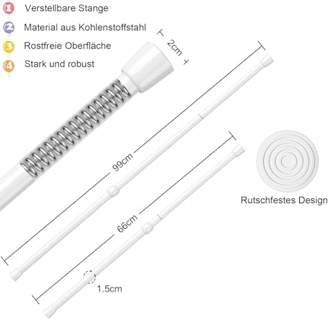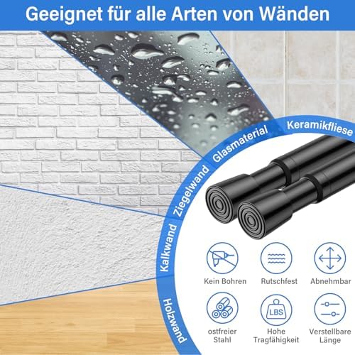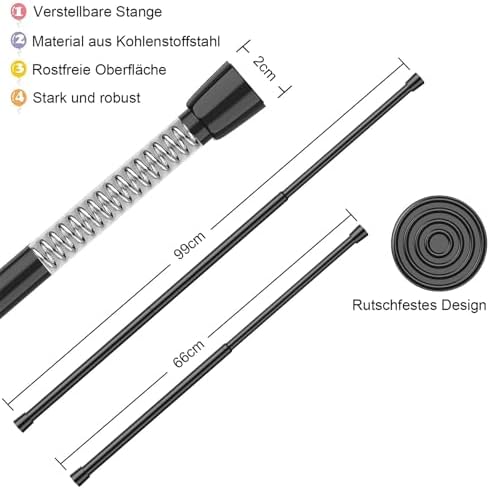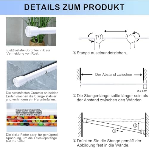 Dank des speziellen PVC-Anti-Rutsch-Designs an beiden Enden der Stange können Sie sicher sein, dass Ihre Vorhänge dort bleiben, wo sie hingehören. Diese Funktion reduziert die Gefahr des Verrutschens und gewährleistet eine sichere Montage in allen empfohlenen Einsatzbereichen. Machen Sie sich keine Sorgen mehr über herabfallende Vorhänge – unsere Gardinenstangen halten alles an Ort und Stelle.