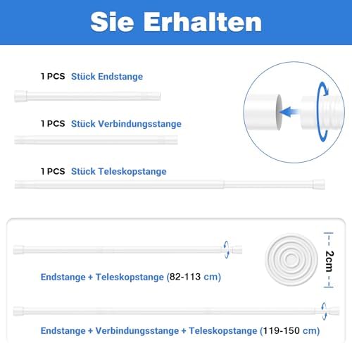 Entdecken Sie unsere hochwertigen, ausziehbaren Gardinenstangen, die nicht nur funktional, sondern auch stilvoll sind. Diese weißen Gardinenstangen bieten Ihnen eine optimale Lösung für Ihr Zuhause, während sie gleichzeitig eine elegante Note hinzufügen.