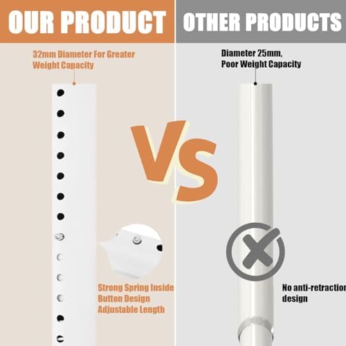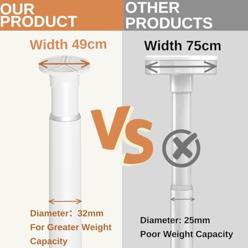 Mit einem Durchmesser von 32 mm bietet die Duschstange erhöhte Stabilität und eine Tragfähigkeit von 10-20 kg. Das 55 mm kompakte Ende ermöglicht eine Montage an schmalen Wänden, Fenster- oder Türrahmen, wodurch sie sich ideal für enge Räume eignet. Zudem sorgt die rutschfeste Struktur am Ende für zusätzlichen Halt, was besonders beim Halten von Duschvorhängen oder Fenstervorhängen von Vorteil ist.