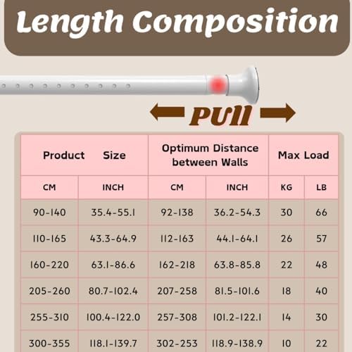 Die innovative Duschstange beeindruckt mit einem ausziehbaren Design von 115-410 cm, das sich mühelos an verschiedene Raumgrößen anpassen lässt. Dank werkzeugloser Installation können Sie die Stange in Sekundenschnelle anbringen, ohne dabei Wände zu beschädigen. Diese Eigenschaft macht sie besonders geeignet für Mietobjekte und Wohnheime. Keine Bohrer oder Schrauben erforderlich – einfach ausziehen, anbringen und fertig!