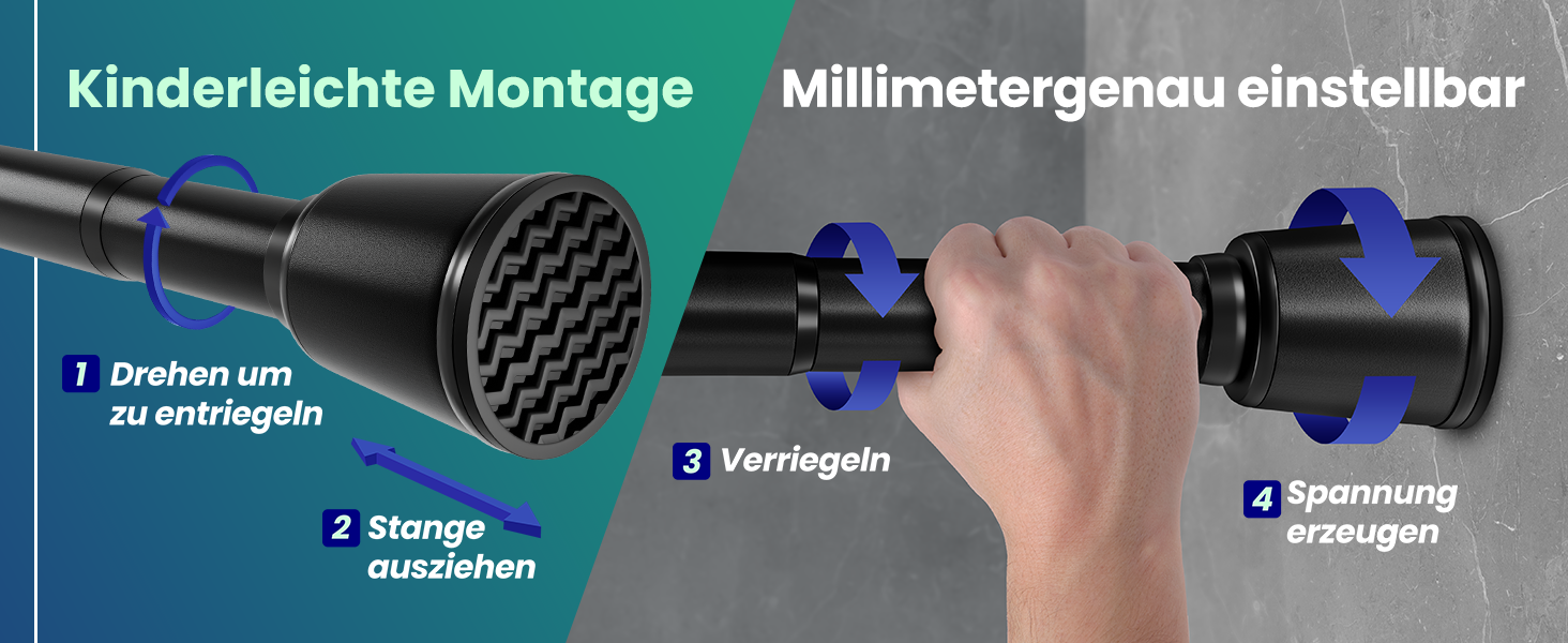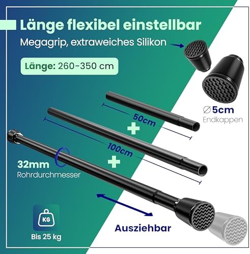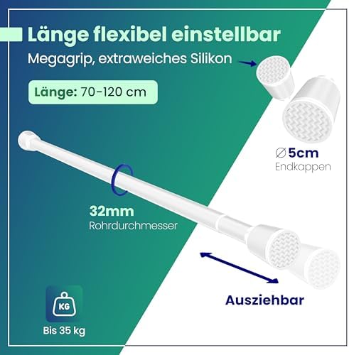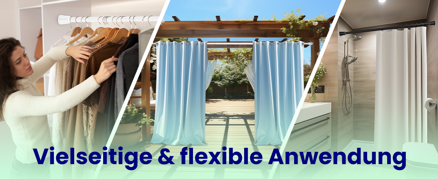 Vielseitige Einsatzmöglichkeiten: Funktioniert nicht nur als Gardinenstange, sondern auch als Duschstange oder Kleiderstange für verschiedene Anwendungen.