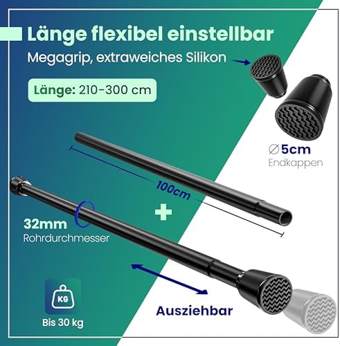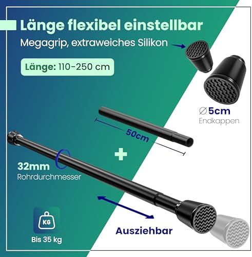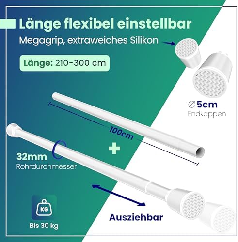 Gardinenstange ohne Bohren – Ausziehbare Teleskopstange für Vorhänge und Duschvorhänge – Ideale Klemmstange für vielfäl