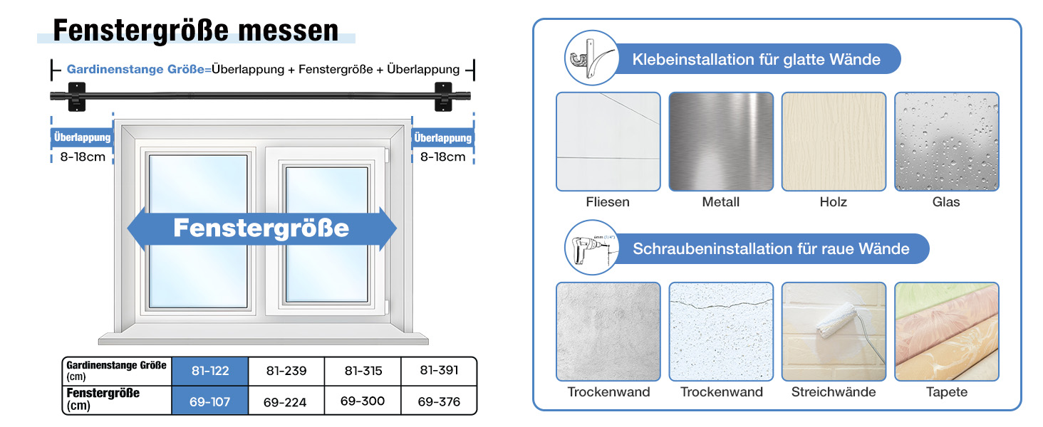 - Anpassbare Länge: Passt auf Fensterbreiten von 48 cm bis 220 cm – Flexibilität für jeden Raum.