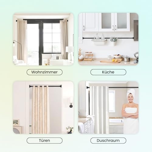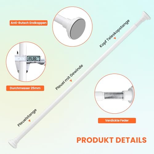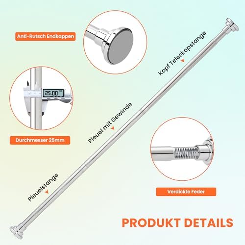 Diese einziehbare Teleskopstange ist extrem vielseitig einsetzbar. Nutzen Sie sie nicht nur als Duschvorhangstange im Badezimmer, sondern auch als Kleiderstange in Ihrer Garderobe oder als Hängestange auf dem Balkon. Aufgrund des innovativen Designs können Sie die Stange flexibel an verschiedenen Orten verwenden, ohne zusätzlichen Aufwand. Die Montageanleitung ermöglicht es Ihnen, die Stange im Handumdrehen einzurichten.