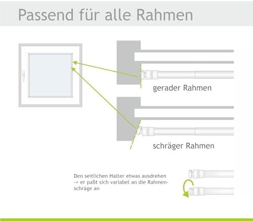 Unsere variable Klemmstange bietet Ihnen die Flexibilität, die Sie benötigen. Sie ist speziell entwickelt, um sowohl auf geraden als auch schrägen Fensterrahmen stabil zu halten. Dank der seitlichen Saugknöpfe können Sie diese individuell anpassen, wodurch ein optimaler Halt gewährleistet wird.