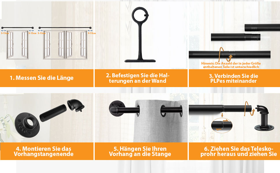 Zusammenfassend ist diese verstellbare Gardinenstange nicht nur funktional, sondern auch ein stilvolles Wohnaccessoire, das jedem Raum Charakter verleiht. Genießen Sie die Kombination aus industriellem Design, robuster Qualität und einfacher Handhabung – ein Produkt, das sowohl Ästhetik als auch praktische Vorteile bietet. Verpassen Sie nicht die Gelegenheit, Ihrem Zuhause mit dieser Gardinenstange eine besondere Note zu verleihen!