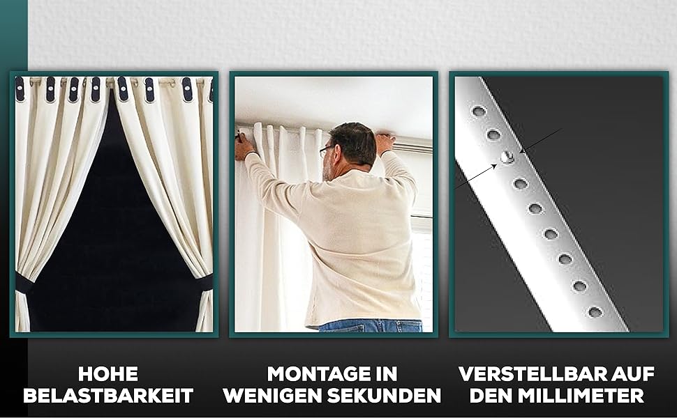 Wer sagt, dass DIY nicht Spaß macht? Mit unserer innovativen Ein-Klick-Montagelösung sind die Vorhangstangen im Handumdrehen montiert – ganz ohne Bohren! Diese benutzerfreundliche Installation macht es Ihnen leicht, Ihre Wohnräume im Nu zu verschönern und dabei Spaß zu haben.