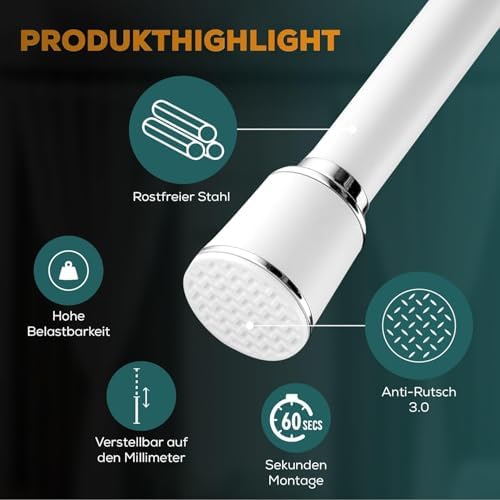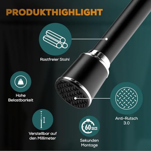 • Verstellbare Spannstange ohne Bohren: Einfaches Anpassen für jeden Raum, ideal für schnelle Umgestaltungen.