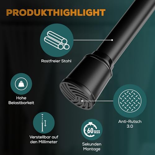 MEISENBERG Teleskop Duschvorhangstange ohne Bohren 170-220cm, Schwarz – Elegante Lösung für Dusche und Türen