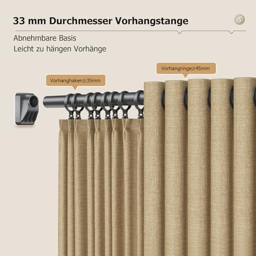 Die GOLDION Teleskopstangen bestehen aus rostbeständigem Edelstahl 304 und weisen eine Durchmesser von 3,2 cm auf. Diese hochwertige Bauweise sorgt für eine höhere Robustheit und eine Tragfähigkeit von bis zu 20 kg. Ideal für schwere Verdunkelungsvorhänge oder als praktische Wäscheständer – hier sind den Möglichkeiten keine Grenzen gesetzt.