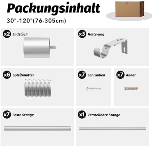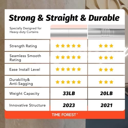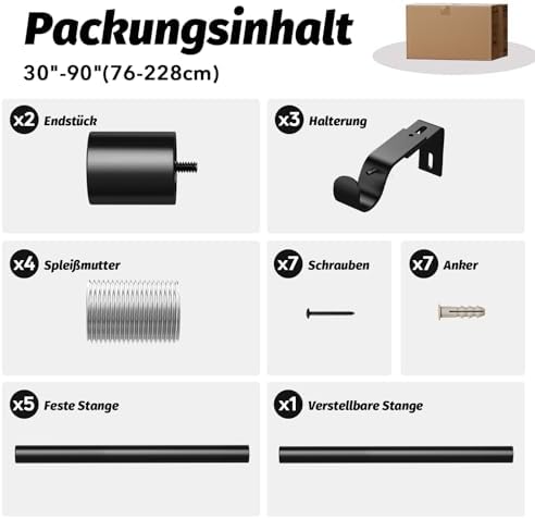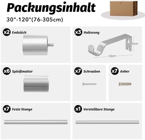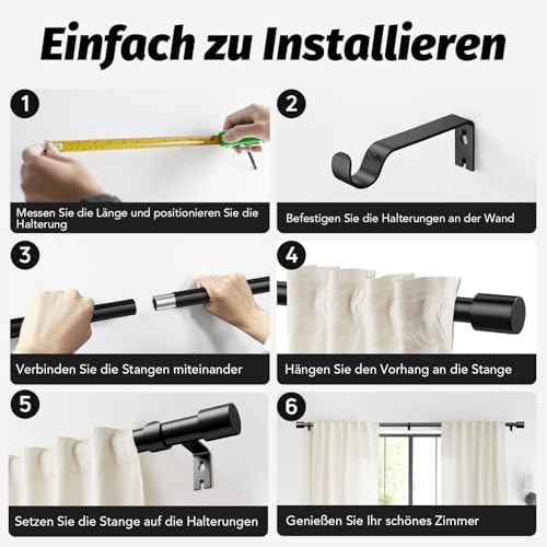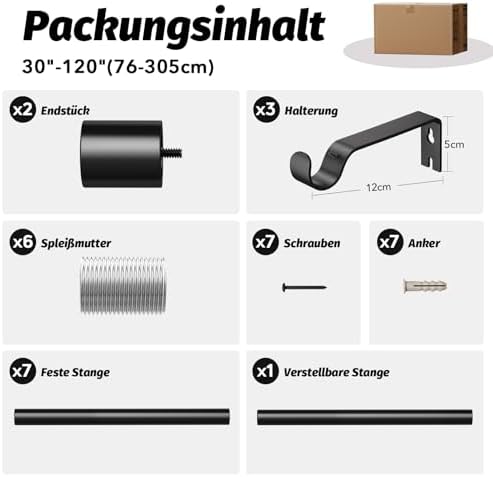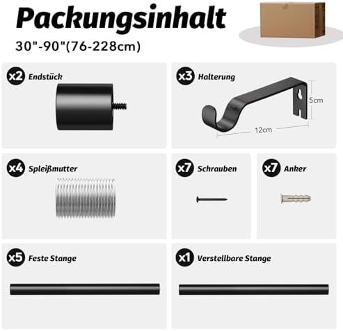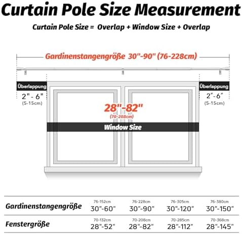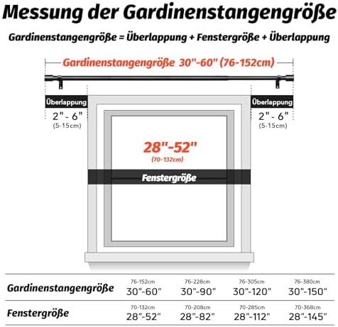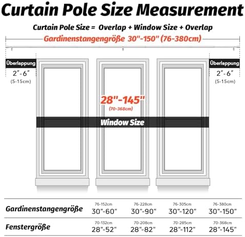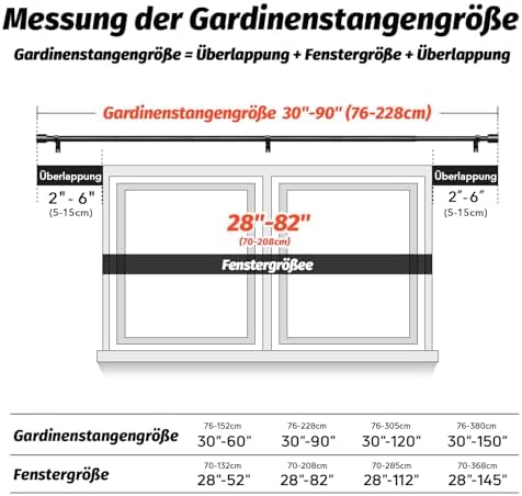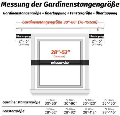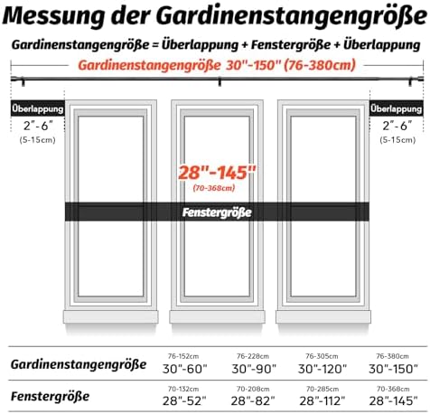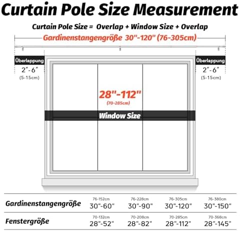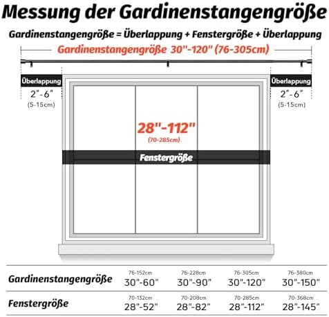 Unsere Gardinenstangen zeichnen sich durch ihre Robustheit und Langlebigkeit aus. Hergestellt aus 100 % hochwertigem Metall, bieten sie mit einer Dicke von 0,7 mm und einem Außendurchmesser von 1 Zoll eine überlegene Stabilität im Vergleich zu herkömmlichen Modellen. Mit einer Tragfähigkeit von bis zu 33 Pfund sind sie ideal für alle Vorhangarten, vom leichten bis hin zu schweren Stoffen.