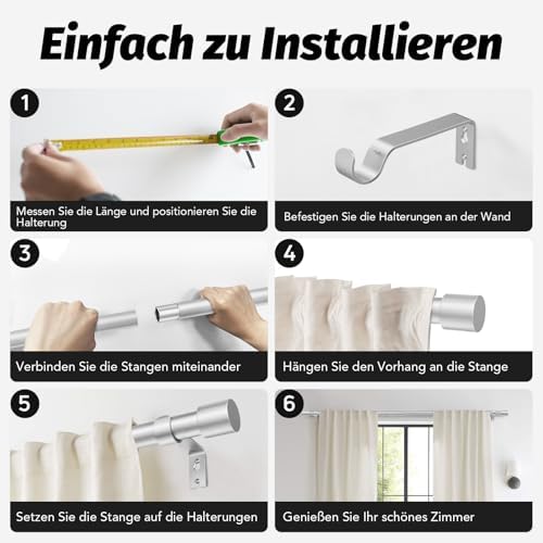 Dank einer neu entwickelten Struktur mit Spleißmuttern lässt sich die Länge der Gardinenstangen einfach anpassen. Diese verlängerten Spleißmuttern garantieren eine hohe Präzision und machen die Montage zum Kinderspiel. Nach der Installation bleiben die Stangen stabil und geradlinig, ohne sich in der Mitte zu verformen – ein entscheidender Vorteil für eine ansprechende Optik in Ihrem Raum.