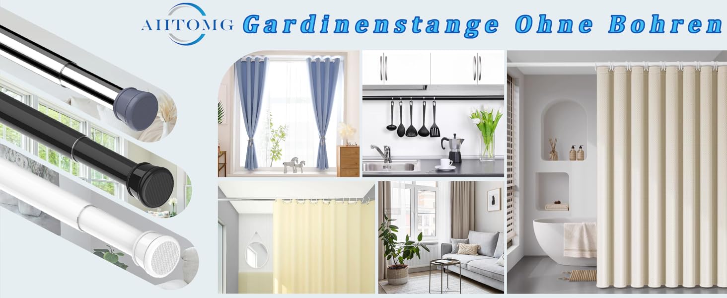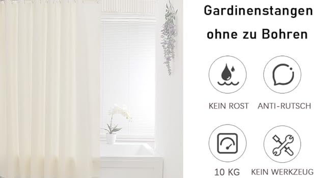 Die Aiitomg Duschvorhangstange verbindet Stil, Komfort und Qualität auf hervorragende Weise. Sie eignet sich perfekt für verschiedene Anwendungsbereiche und bietet eine einfache Montage ohne Bohren. Holen Sie sich diese praktische und ästhetisch ansprechende Lösung für Ihr Zuhause und erleben Sie den Unterschied!