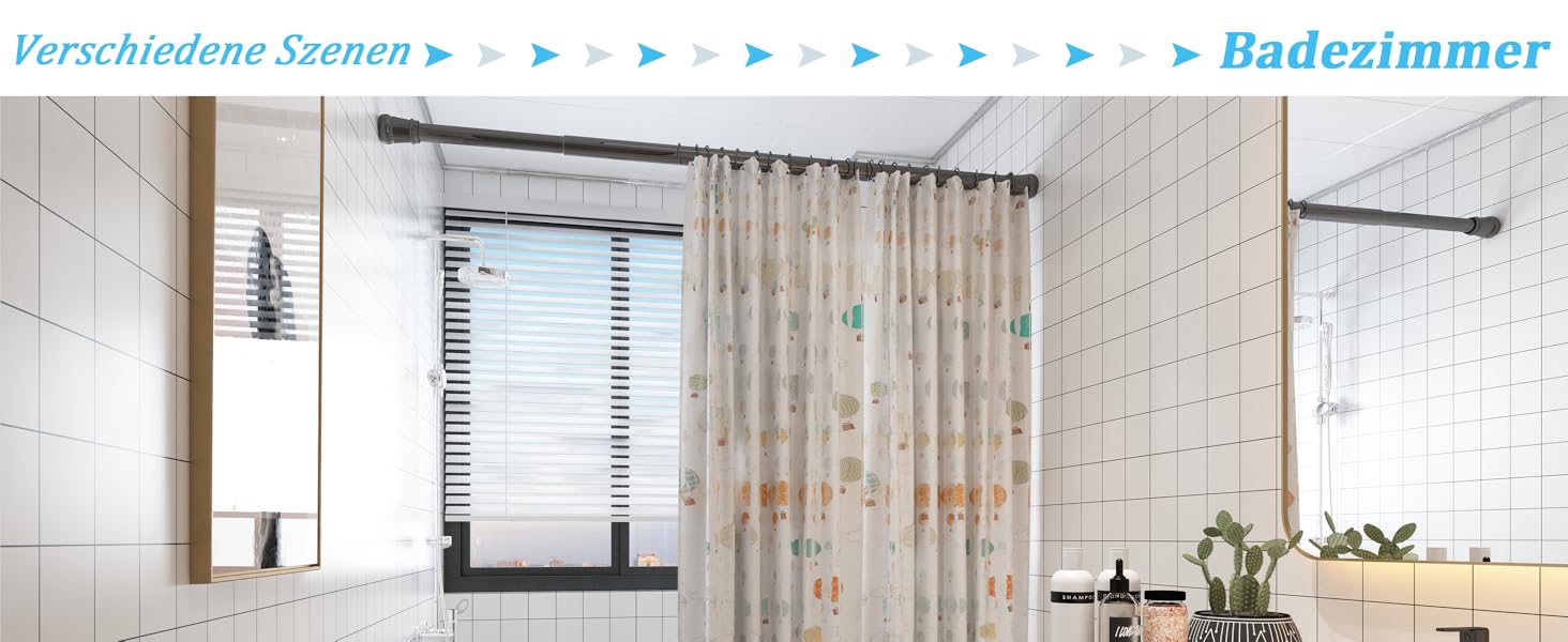 Die Teleskopstange ist nicht nur für Duschräume geeignet, sondern kann auch in Badezimmern, Schränken, Fenstern oder Türen eingesetzt werden. Ob im Innen- oder Außenbereich – die Aiitomg Duschvorhangstange erweist sich als multifunktional und passt sich Ihren Bedürfnissen an.