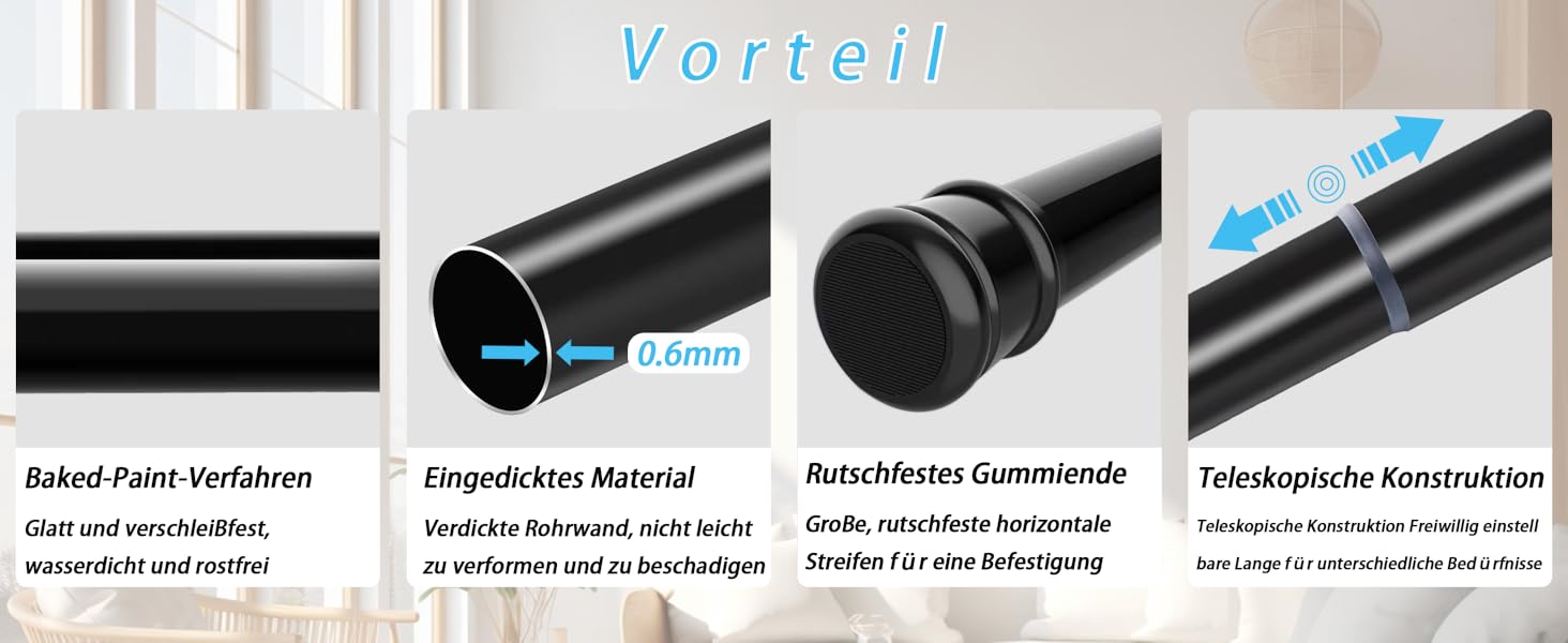 Vorhangstange ohne Bohren – Teleskop Spannstange für Badezimmer & Fenster 73-145CM, weiß, stabil & flexibelVorhangstange ohne Bohren – Teleskop Spannstange für Badezimmer & Fenster 73-145CM, weiß, stabil & flexibel
